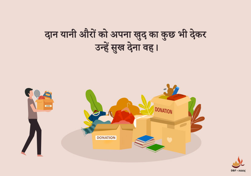 दान यानी औरों को अपना खुद का कुछ भी देकर उन्हें सुख देना वह।