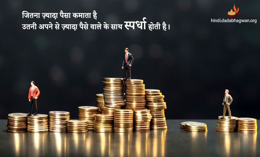 इतना ही नहीं, पैसे की स्पर्धा का तो कोई अंत नहीं है। क्योंकि अच्छे-बुरे काम करके, ज़्यादा पैसा कमाकर भी किसी को संतोष नहीं हुआ। जितना ज़्यादा पैसा कमाता है उतनी अपने से ज़्यादा पैसे वाले के साथ स्पर्धा होती है। पहला नंबर आए, सफलता मिले तो भी एकाद साल के लिए अख़बार या मैगज़ीन में आता है, लेकिन बाद में यह सफ़लता लंबी नहीं टिकती।